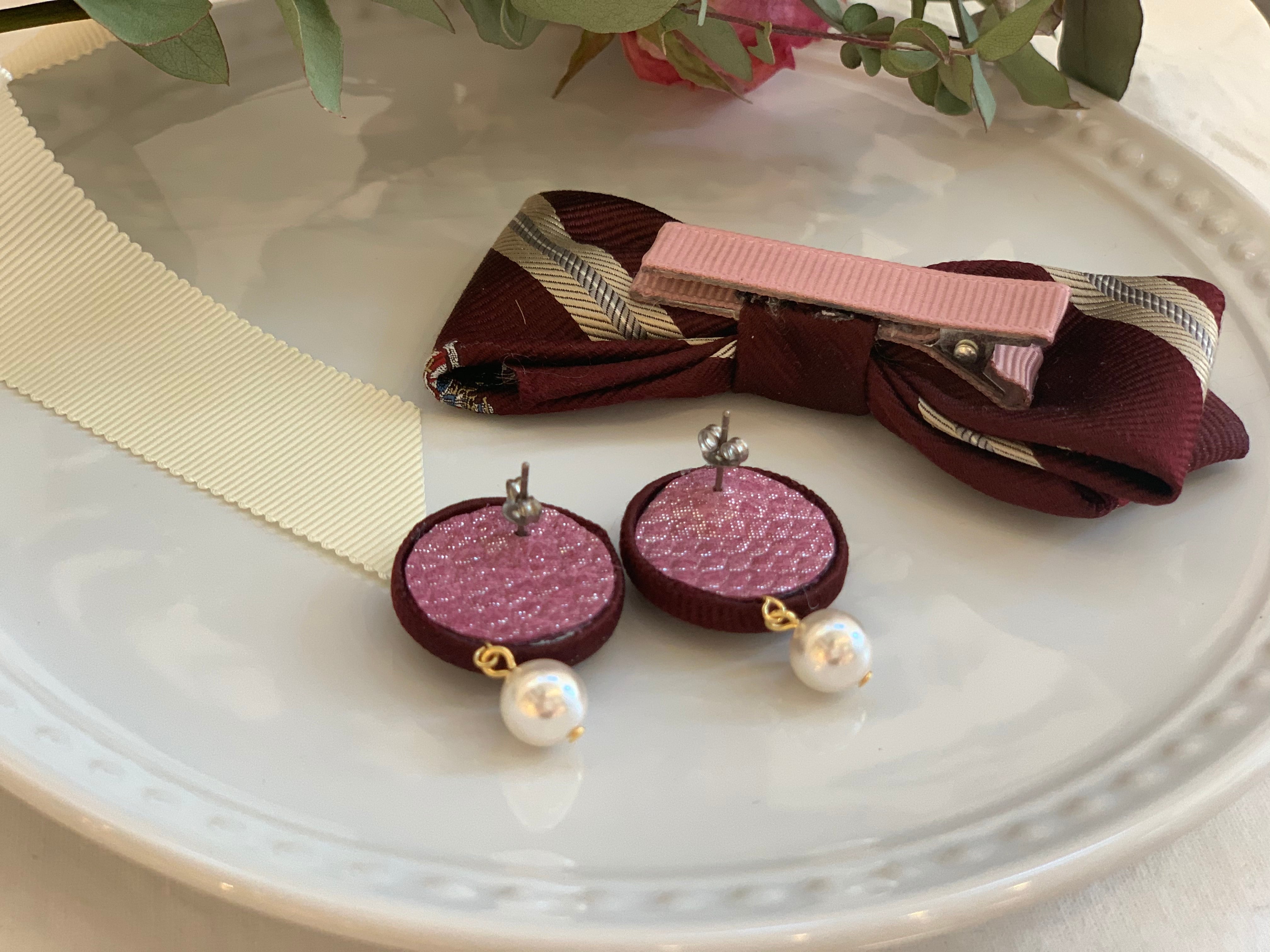 不要となったネクタイのアップサイクルリボンを使用したお揃いアイテム。